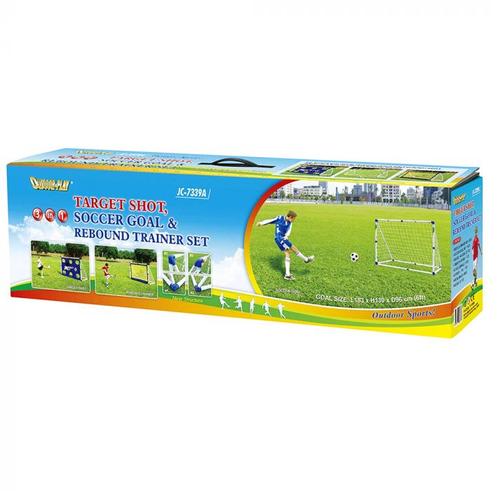 Versatile games set allows play and practice three ways: Soccer, Rebound Training and Target Shot