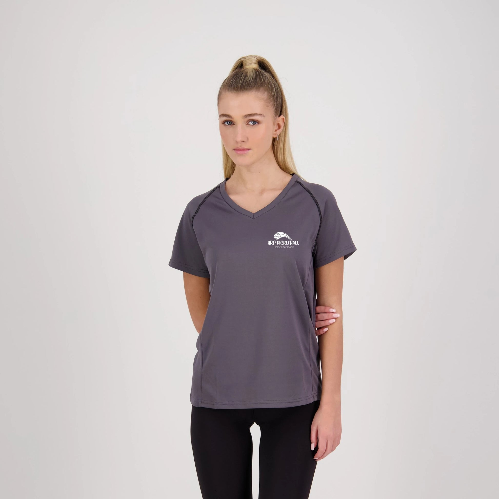 Hibiscus Coast Pickleball XT Performance Playing Shirt - Ladies - Dark Grey - With Small White Logo