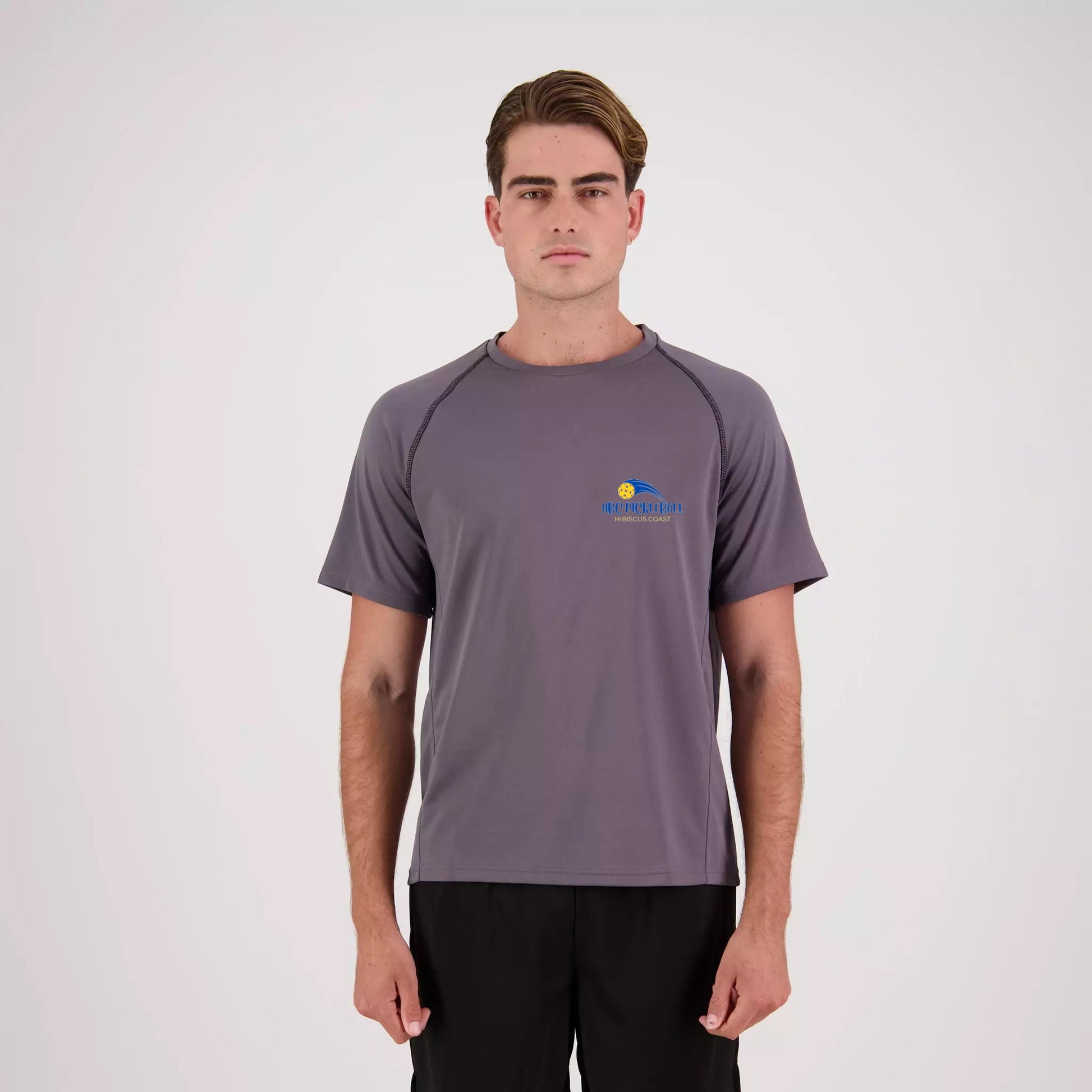Hibiscus Coast Pickleball XT Performance Playing Shirt - Mens - Dark Grey - With Small Coloured Logo