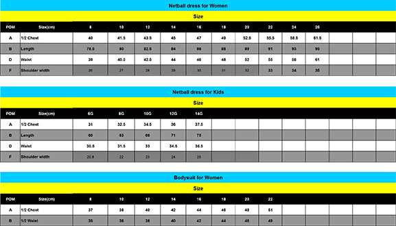 Take your team to the next level with OneVOne Netball Teamwear. Sublimated dress, available in Girls and Ladies sizes (refer size chart for measurements). Available in either Dritech 100% Polyester. Price is inclusive of 3 x logos, freight and artwork. Lead time is approximately 4 weeks from signoff of artwork & pre-payment. Bibs are also available at an additional cost. Minimum Order Quantity is 10 x Dresses. Full payment required in advance. Made in China.