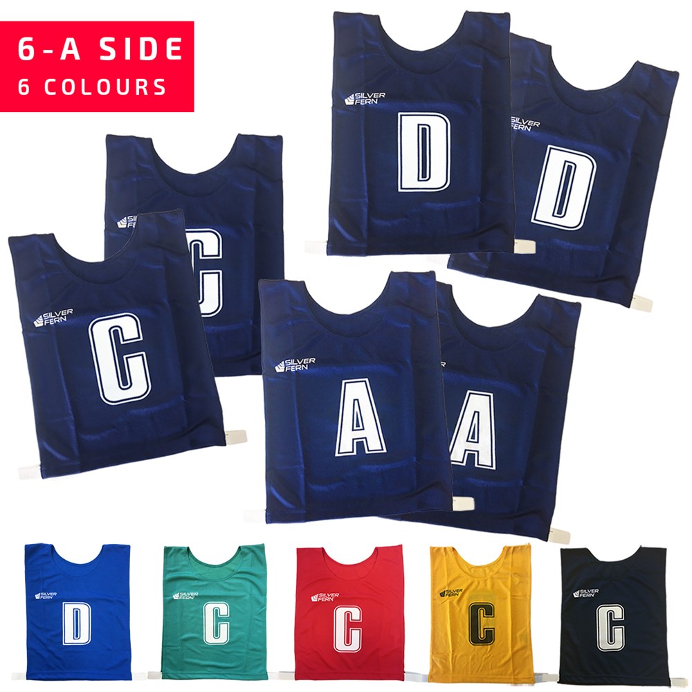 Comfortable polyester over the shoulder bibs with elastic sides and printed position letters. Made from the same fabric as our netball uniforms.